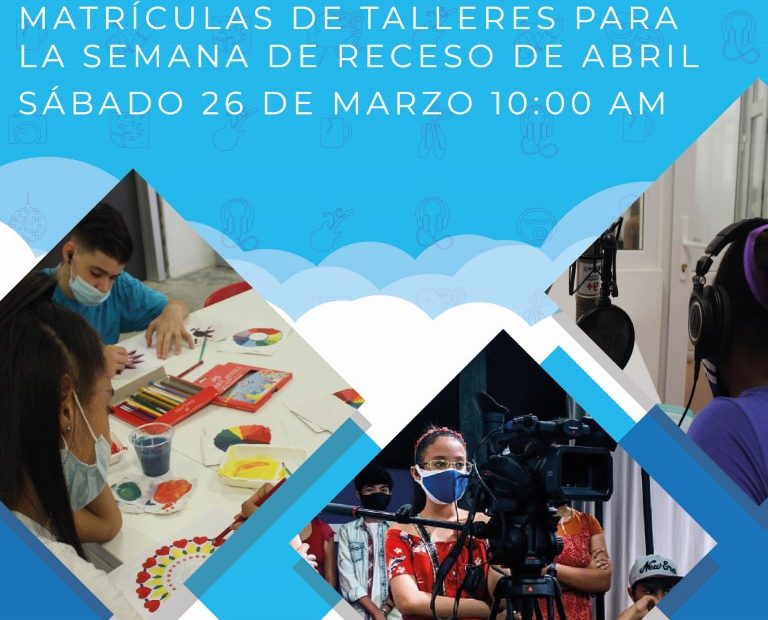 Podrás matricularte en Talleres Especiales para la semana de receso docente del mes de Abril, relacionados con las manifestaciones artísticas, la comunicación y las nuevas tecnologías (Serigrafía, Locución, a+ Felicidad, Photoshop, Danza, Fotografía, Emoción, Stop-motion, Cosplay, Periodismo, Selfie, Introducción al Piano, Marketing Básico, Robótica y Cuidados de la Piel- Técnicas Corporales y Relajación)